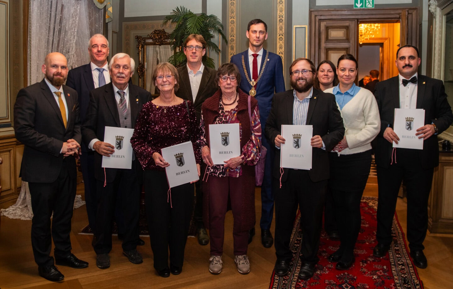 Im feierlichen Rahmen wurde am 13. Dezember 2025 auf Schloss Britz die Neuköllner Ehrennadel an fünf Bürgerinnen und Bürger verliehen, die sich in besonderer Weise um den Bezirk verdient gemacht haben. Der Verleihung der Ehrennadel durch unseren Bezirksbürgermeister Martin Hikel und den Vorsteher der Bezirksverordnetenversammlung, Karsten Schulze, wohnten unsere Fraktionsvorsitzende Cordula Klein sowie ihr Stellvertreter Peter Scharmberg bei. Auch unsere Stadträtin für Bildung, Kultur und Sport sowie Spitzenkandidatin für das Amt der Neuköllner Bezirksbürgermeisterin, Janine Wolter und unser stellvertretender Bezirksverordnetenvorsteher Lars Oeverdieck waren anwesend. Aus dem Deutschen Bundestag kam unser Abgeordneter Hakan Demir.
